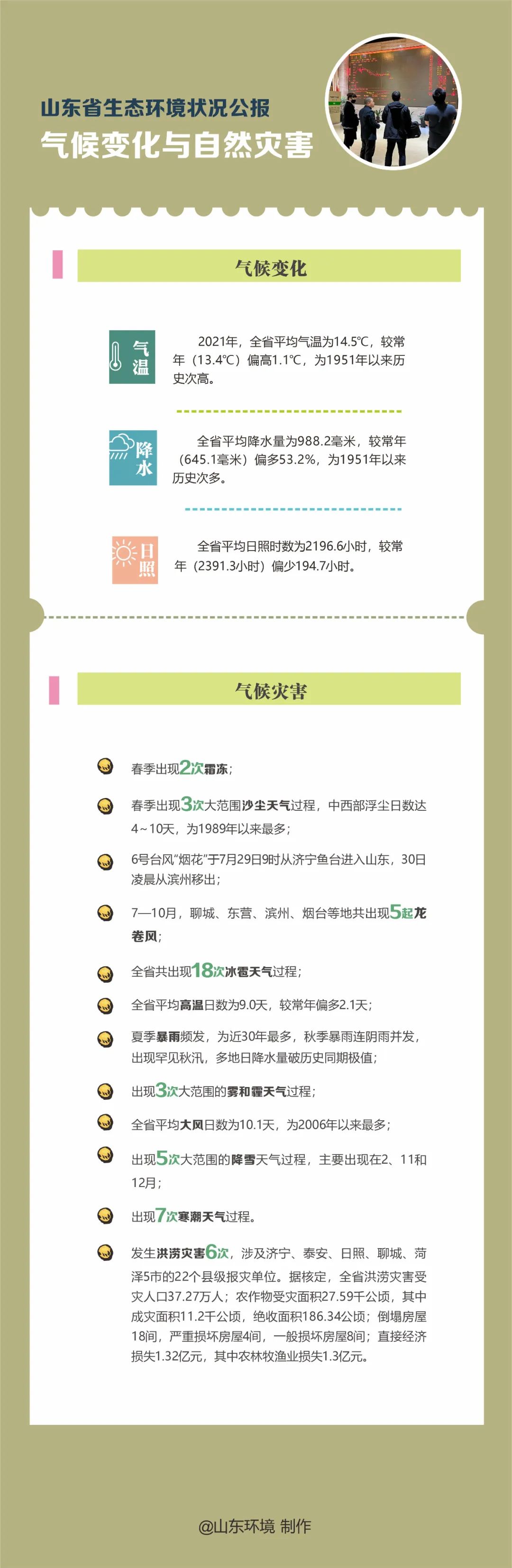 6月6日,省政府新聞辦舉行新聞發(fā)布會,發(fā)布《2021年山東省生態(tài)環(huán)境狀況公報》。2021年,全省生態(tài)環(huán)境質量持續(xù)改善,達到有監(jiān)測記錄以來的更好水平,生態(tài)環(huán)境保護實現“十四五”起步之年良好開局。